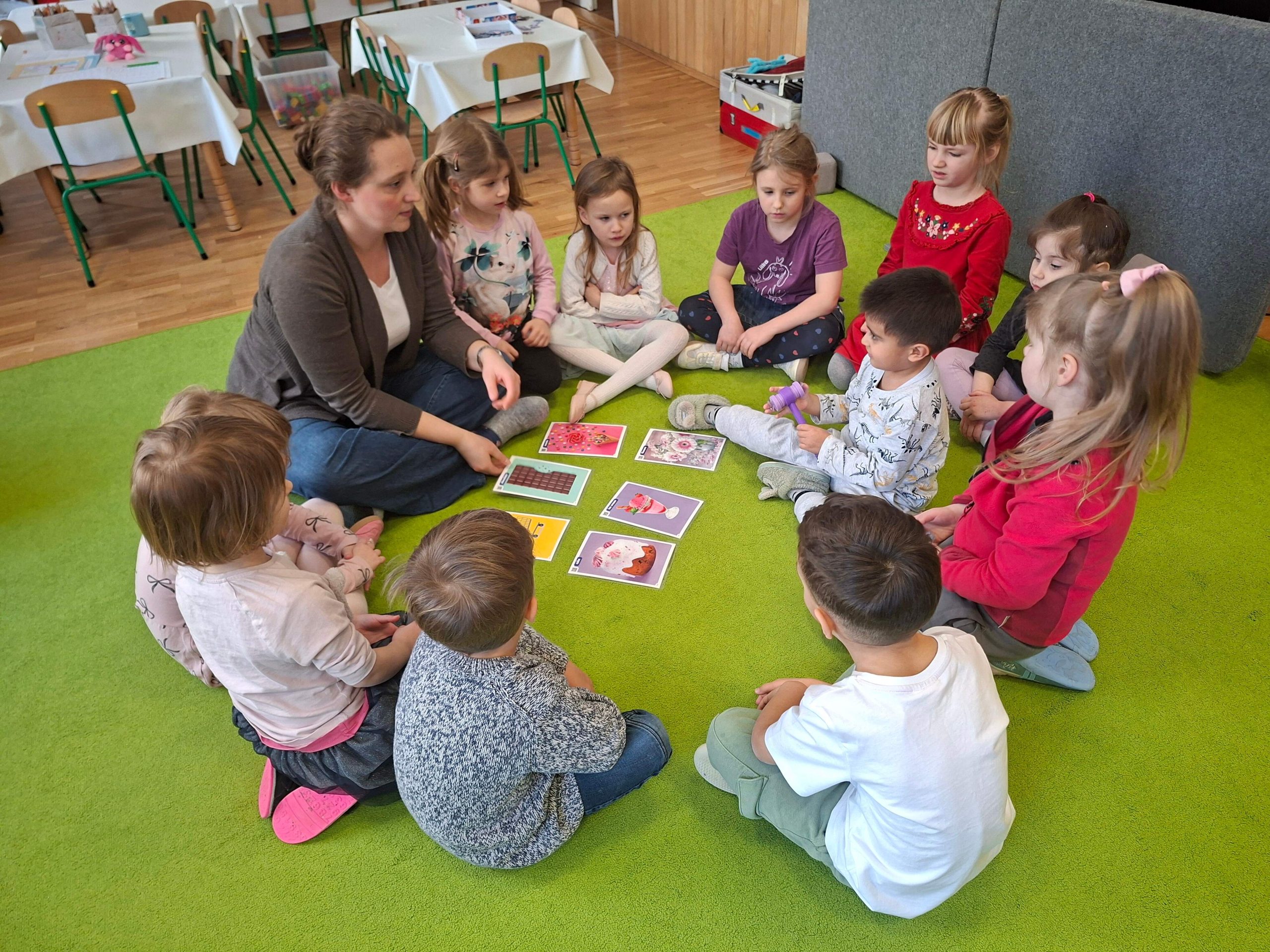 z akompaniamentem pianina oraz z aktywnym wykorzystaniem instrumentów perkusyjnych. Rytmika uwrażliwia dzieci na wszystkie elementy muzyki, rozwija zainteresowania i potencjał artystyczny oraz pozwala odkryć talenty. Podczas zajęć dzieci nabywają wielorakie kompetencje muzyczne m.in.: poczucie rytmu, melodii, harmonii, dyspozycje głosowe, smak muzyczny i wrażliwość muzyczną czy estetykę ruchu. Podczas zajęć dzieci uczestniczą w zabawach rytmicznych, zabawach ruchowych z akompaniamentem, uczą się tematycznych piosenek, tańców ludowych lub regionalnych, muzykują na instrumentach perkusyjnych czy przygotowują muzyczne występy artystyczne. Ruch połączony z muzyką wspiera rozwój intelektualny, motoryczny i emocjonalny.