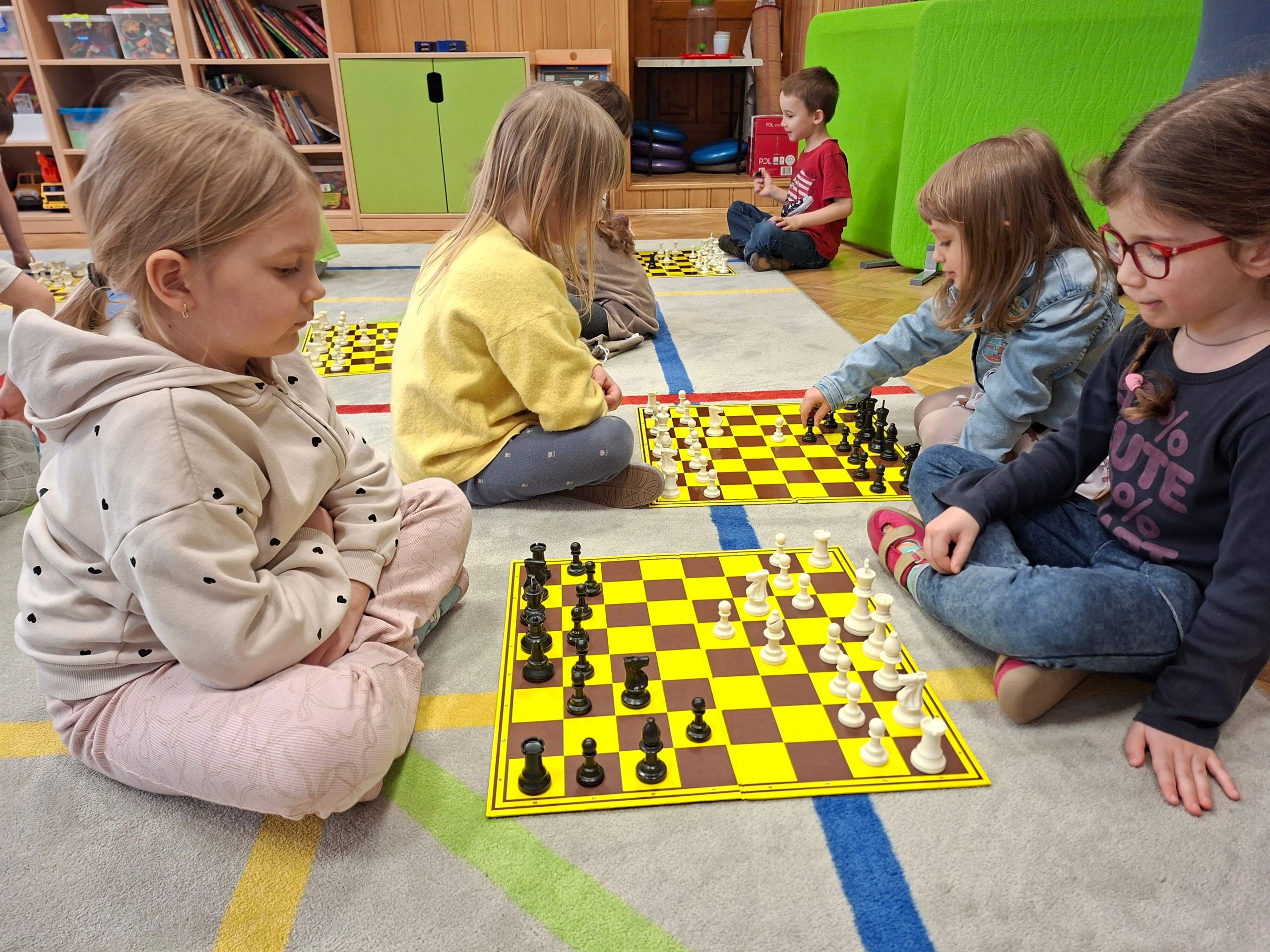 Zajęcia szachowe odbywają się raz w tygodniu grupach dzieci 5 – i 6 – letnich.  Prowadzi je pan Sebastian, instruktor z Krakowskiego Klubu Szachowego. Nauka gry w szachy sprzyja wszechstronnemu rozwojowi, szczególnie myślenia logicznego, algorytmicznego i strategicznego; rozwija wyobraźnię, zdolności twórcze, systematyczność, cierpliwość i odporność emocjonalną. Podczas zajęć dzieci krok po kroku odkrywają arkana gry w szachy poprzez aktywne rozgrywki pionkami na szachownicy dostosowane do możliwości i umiejętności dzieci oraz stopnia zaawansowania w grze.